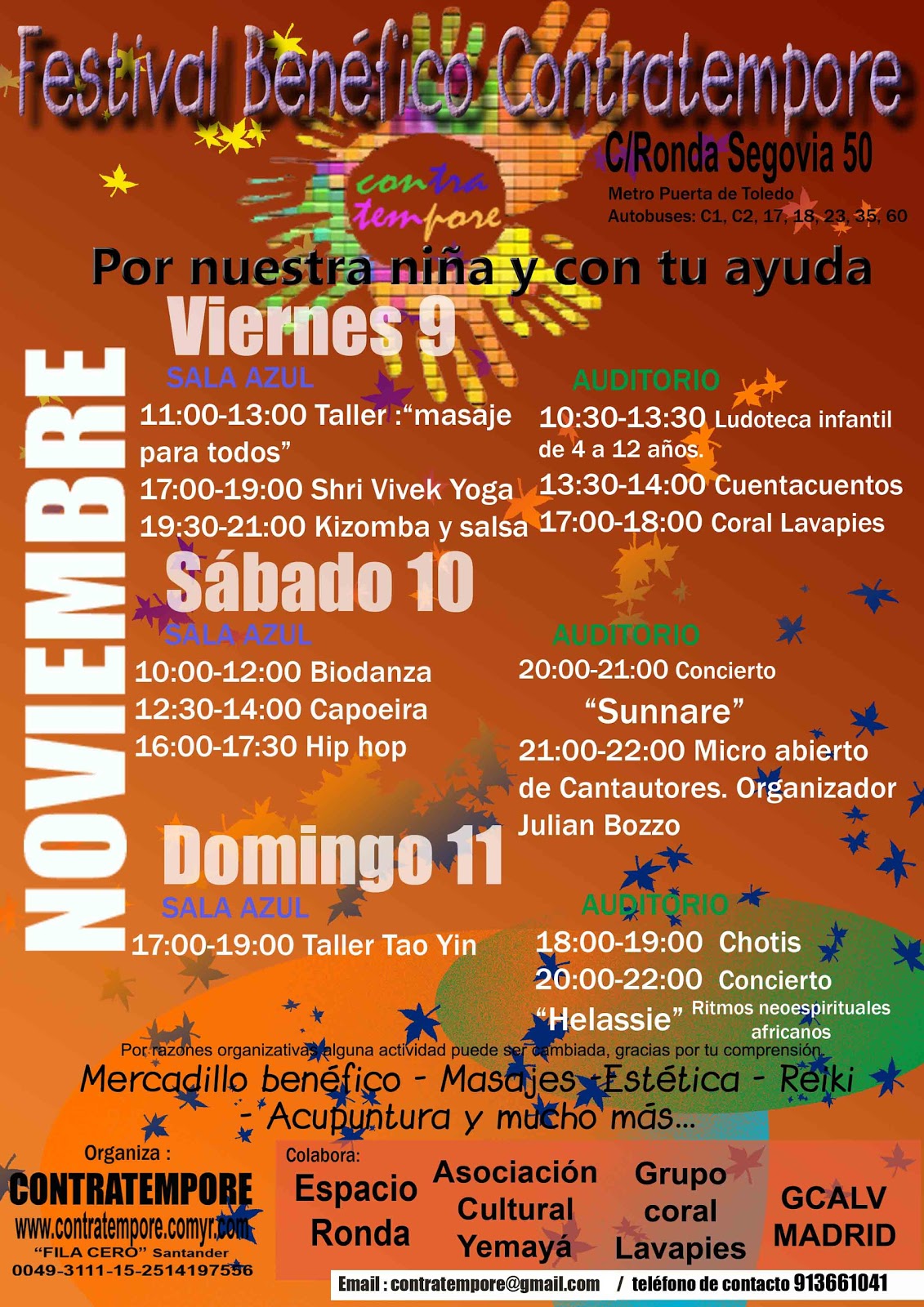 Adjuntamos el cartel con las actividades que se realizarán y podréis encontrar más información en http://www.contratempore.comyr.com